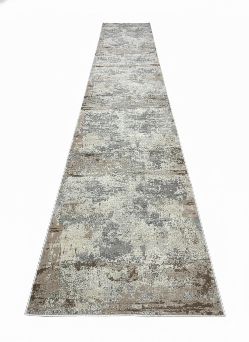 This runner carpet features a modern abstract design with softly blended neutral tones, creating a versatile and timeless look. The distressed pattern adds visual depth and texture while maintaining a calm, understated aesthetic that complements both contemporary and classic interiors. Finished with subtle fringe detailing at the edges, it brings a touch of artisanal character and warmth to any space. Ideal for hallways, entryways, kitchens, or narrow living areas, this runner offers a perfect balance of style, comfort, and everyday practicality.
