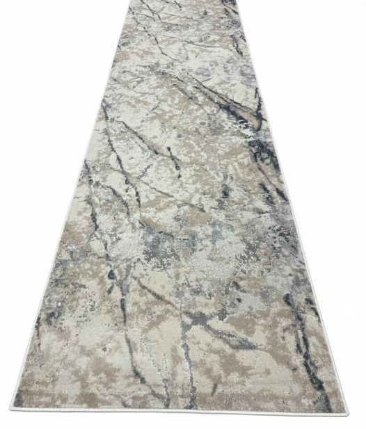 This runner carpet features a modern abstract design with softly blended neutral tones, creating a versatile and timeless look. The distressed pattern adds visual depth and texture while maintaining a calm, understated aesthetic that complements both contemporary and classic interiors. Finished with subtle fringe detailing at the edges, it brings a touch of artisanal character and warmth to any space. Ideal for hallways, entryways, kitchens, or narrow living areas, this runner offers a perfect balance of style, comfort, and everyday practicality.