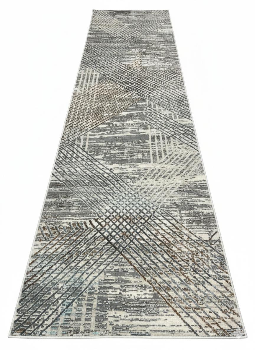 This runner carpet features a modern abstract design with softly blended neutral tones, creating a versatile and timeless look. The distressed pattern adds visual depth and texture while maintaining a calm, understated aesthetic that complements both contemporary and classic interiors. Finished with subtle fringe detailing at the edges, it brings a touch of artisanal character and warmth to any space. Ideal for hallways, entryways, kitchens, or narrow living areas, this runner offers a perfect balance of style, comfort, and everyday practicality.