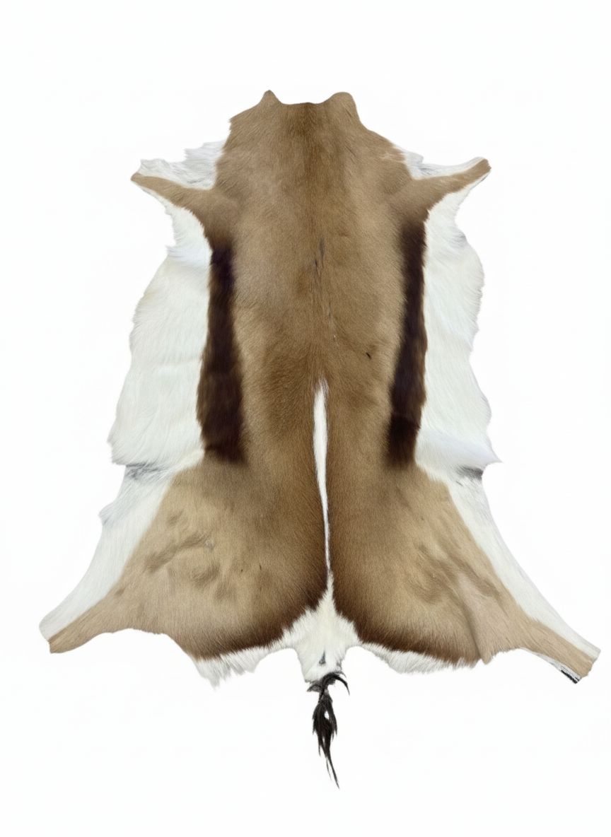 Add a touch of organic luxury to your home with this stunning, hand-selected Springbok hide. Featuring a rich cinnamon-colored coat accented by deep espresso side stripes and a brilliant white underbelly, this piece is a masterclass in natural contrast. Its most distinctive feature is the “pronk”—the signature tuft of white hair along the spine that adds unique texture and character. Whether draped over a leather chair or displayed as a wall hanging, this hide brings timeless African elegance to any space.