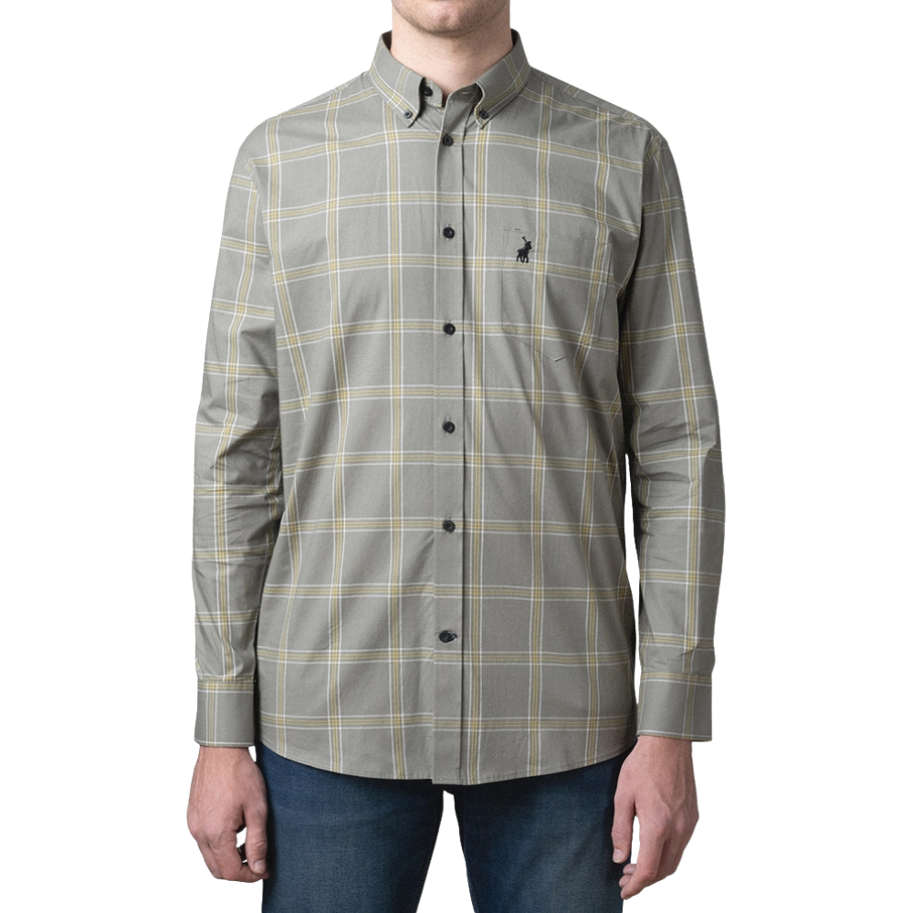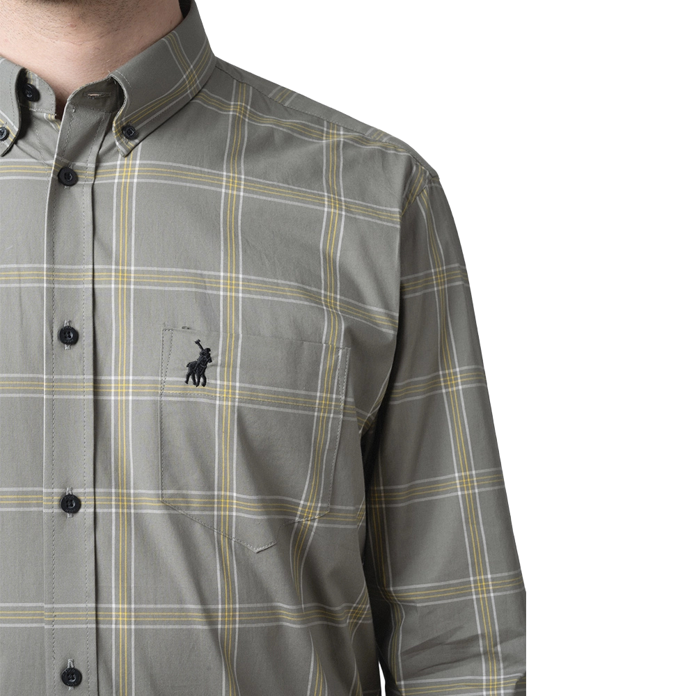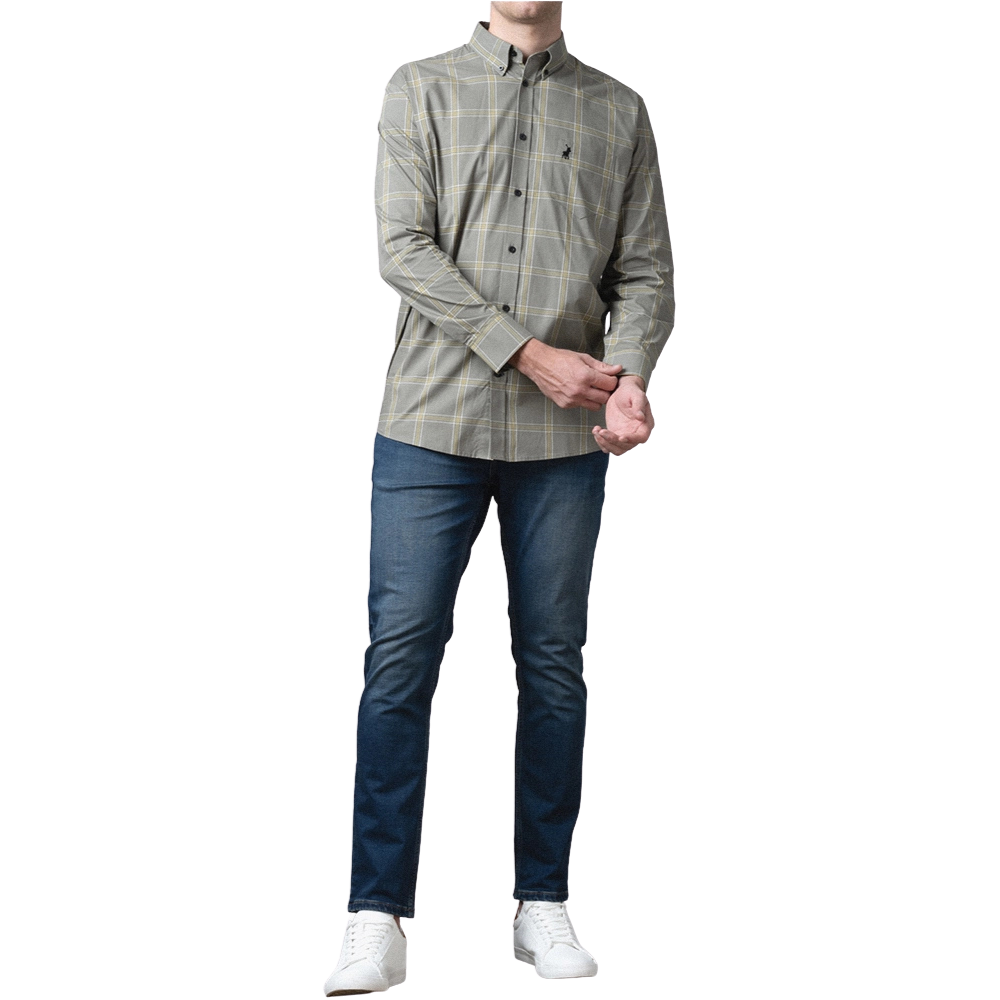 Polo Mens Easy Care Check Long Sleeve Shirt Fatigue