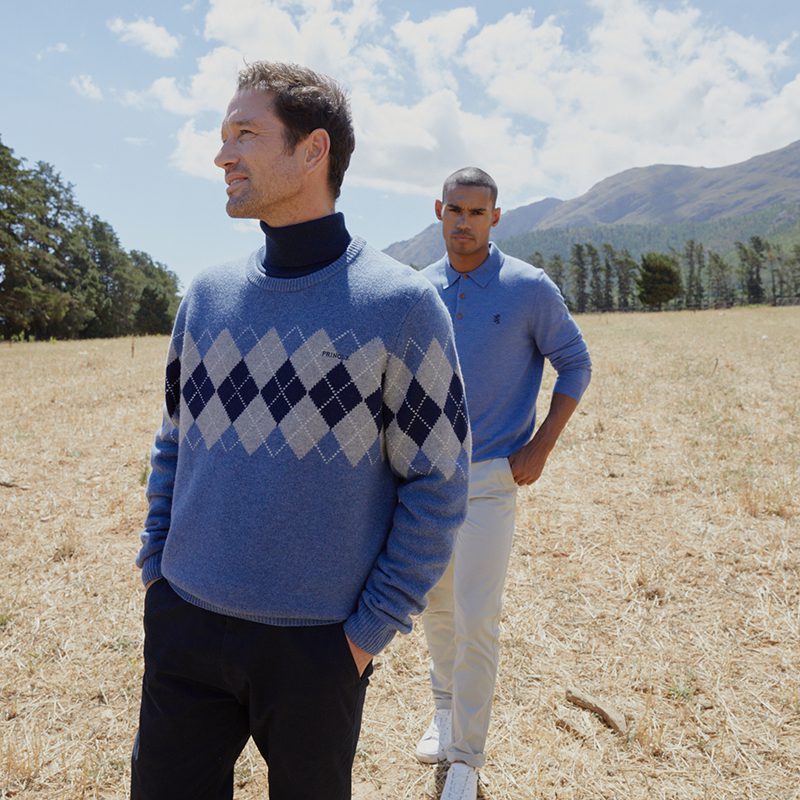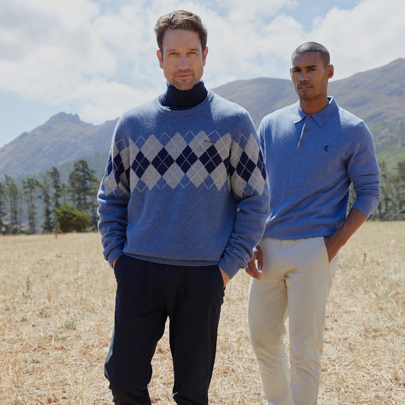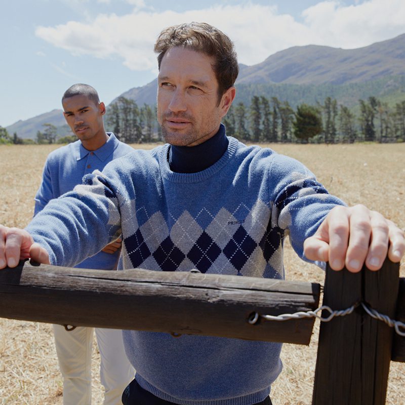 Pringle Cameron Argyle Crewneck Sweater Blue