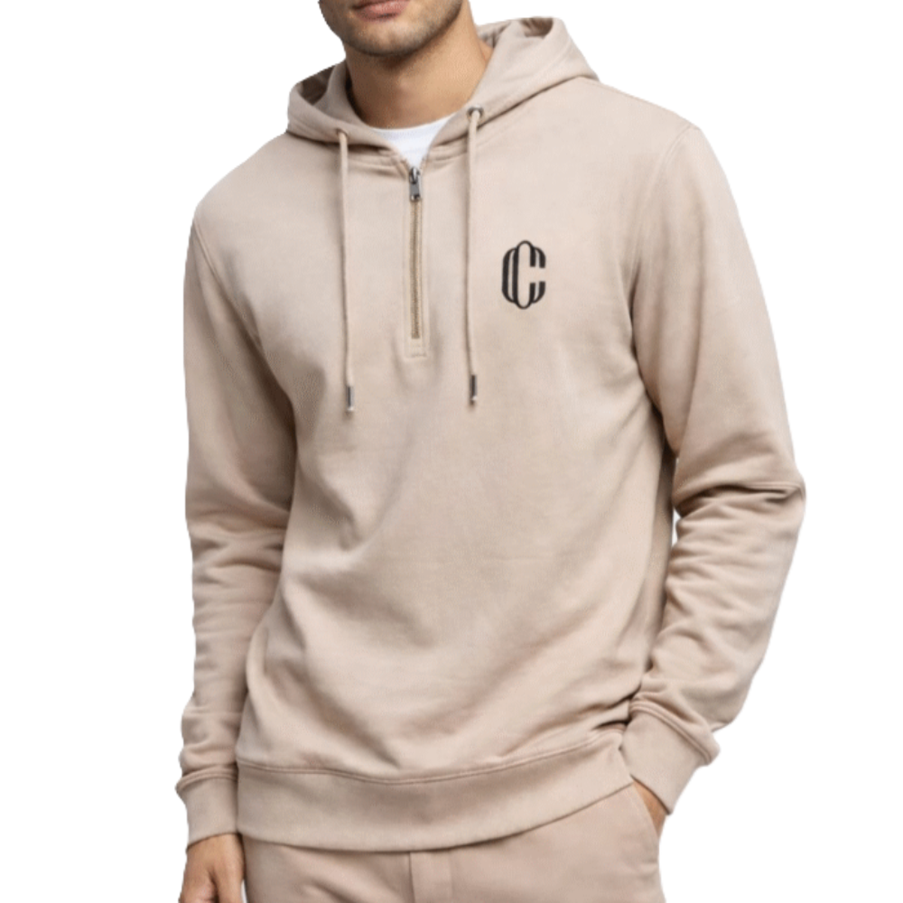 A refined casual hoodie combining the comfort of a sweater with the relaxed styling. The stone color gives it a versatile neutral look that pairs easily with denim, chinos, or layered winter outfits. Features ribbed cuffs, soft knit fabrication, and a regular-to-slim modern fit.