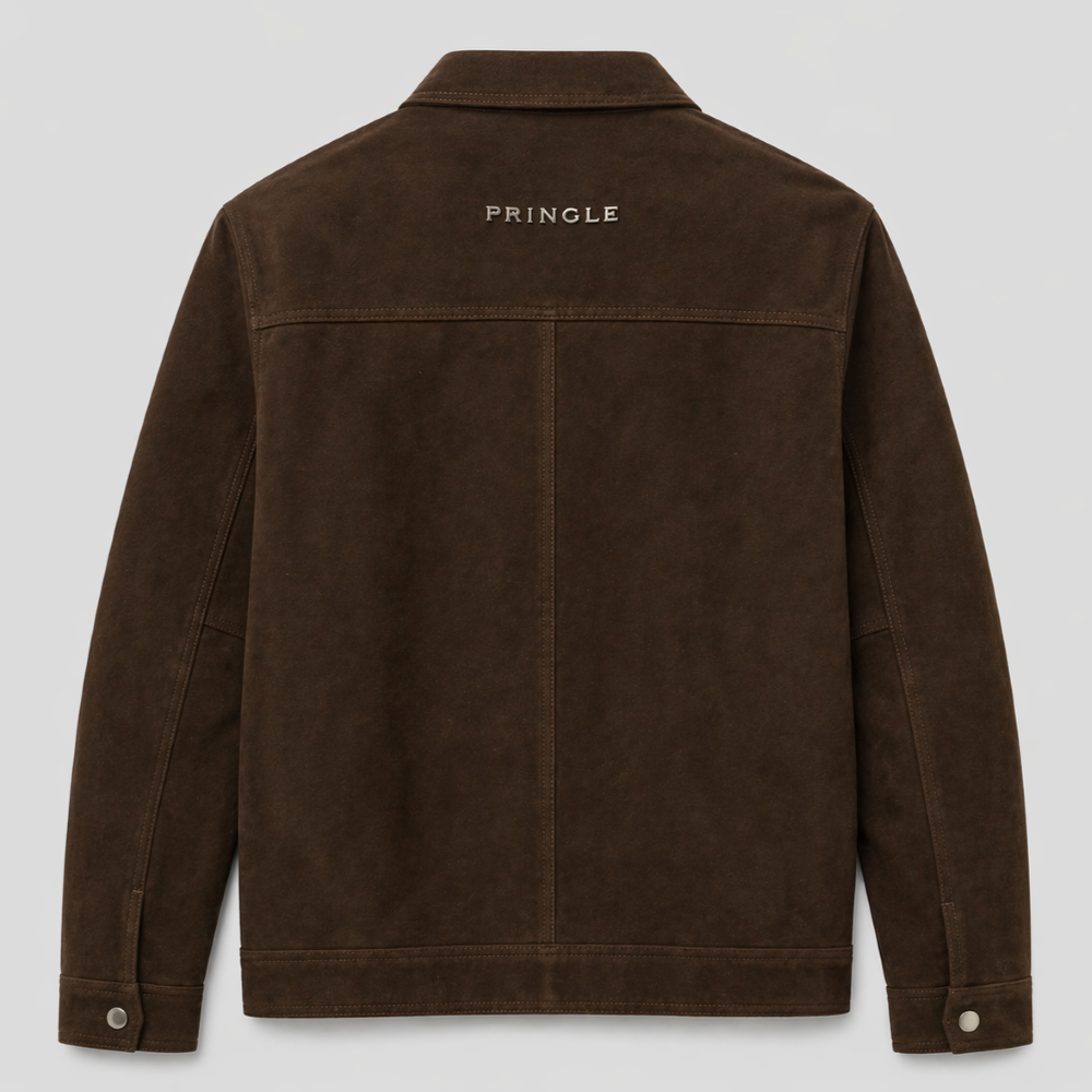 The Pringle Elijah Sueded Jacket is a refined outerwear piece that balances rugged appeal with sophisticated detailing. Crafted from 100% soft sueded leather, this jacket features practical chest pockets and side pockets, offering both style and functionality. A gunmetal zipper with an engraved Pringle zip pull adds a sleek, modern touch, while gunmetal poppers at the cuffs enhance the jacket’s utility-inspired aesthetic. Topstitching along key details adds subtle texture and reinforces the premium craftsmanship. Finished with Pringle’s signature metal branding at the centre-back neck, this jacket exudes understated sophistication. The Pringle Elijah Sueded Jacket is the perfect layering piece for transitional weather, delivering a polished yet casual look for any occasion.