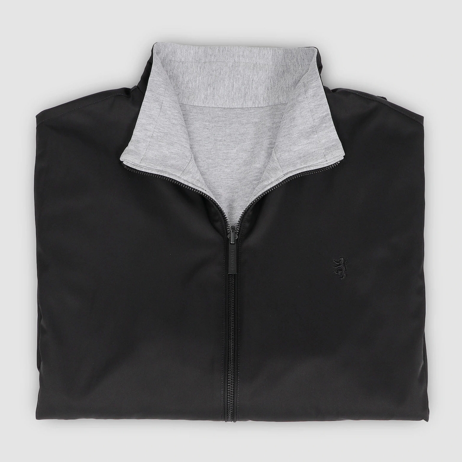 The Pringle Sean Reversible Jacket offers two distinctive looks in one versatile design, making it the perfect layering piece for any occasion. This zip-up jacket features an engraved Pringle zipper pull and a high collar for a sleek, modern finish. The black side is crafted from durable Polyester, giving the jacket a sporty, contemporary look, while the grey side is made from soft knitted Cotton, creating a more casual look. Both sides feature side pockets for practicality and the iconic Pringle lion embroidered on the left chest for a signature touch. A thick ribbed hem enhances the fit, adding both comfort and a refined finish. Completed with Pringle of Scotland branding at the centre-back neck, the Pringle Sean Reversible Jacket is a stylish and functional addition to any wardrobe, offering versatility without compromising on quality or comfort.