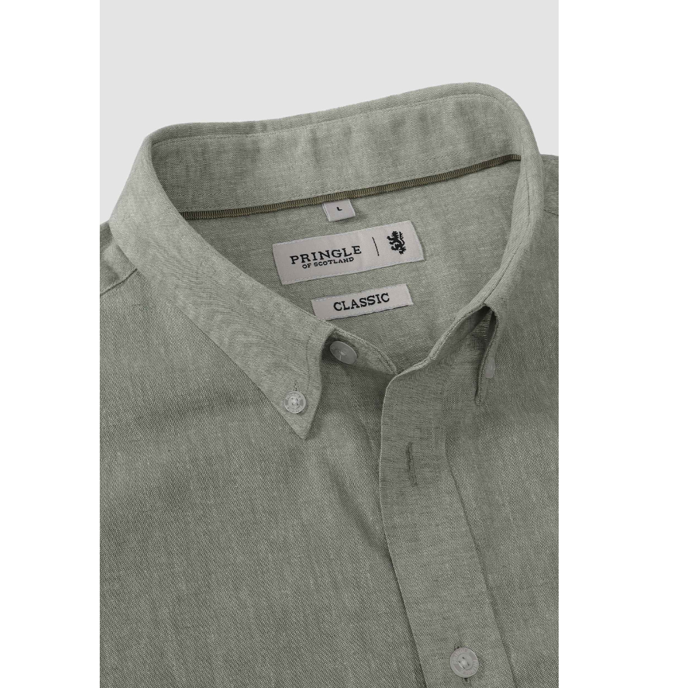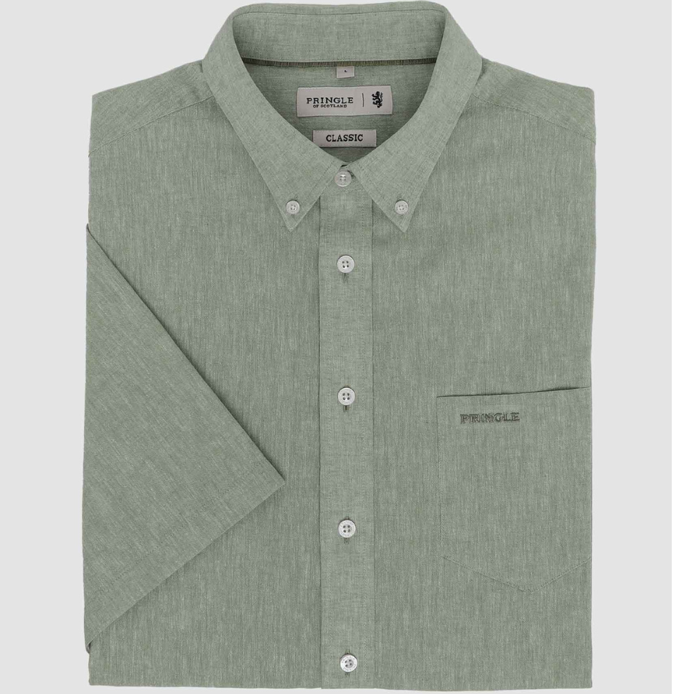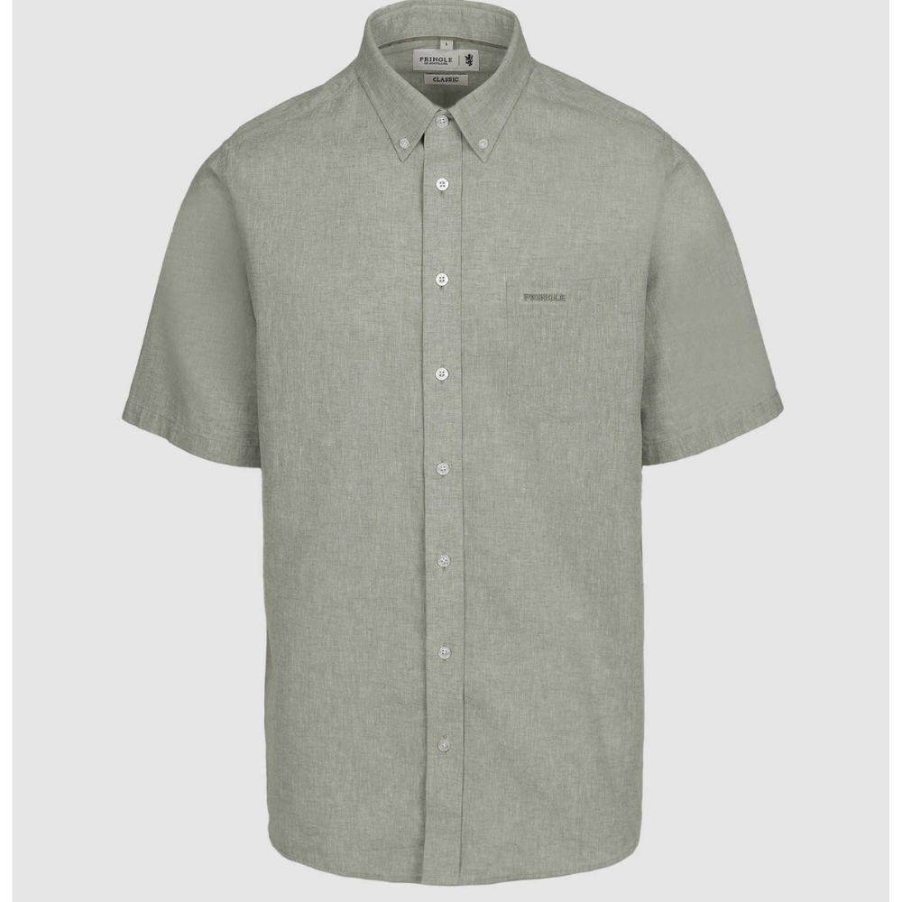 The Barry Short Sleeve Linen Shirt is crafted from a premium linen-cotton blend, making it the ideal warm-weather essential. Designed with a relaxed silhouette and breathable construction, this shirt delivers all-day comfort while maintaining a polished, refined appearance. The button-down collar adds smart structure, while the embroidered pocket detail introduces a subtle touch of Pringle heritage. Available in versatile shades, this timeless woven piece pairs effortlessly with chinos or denim.