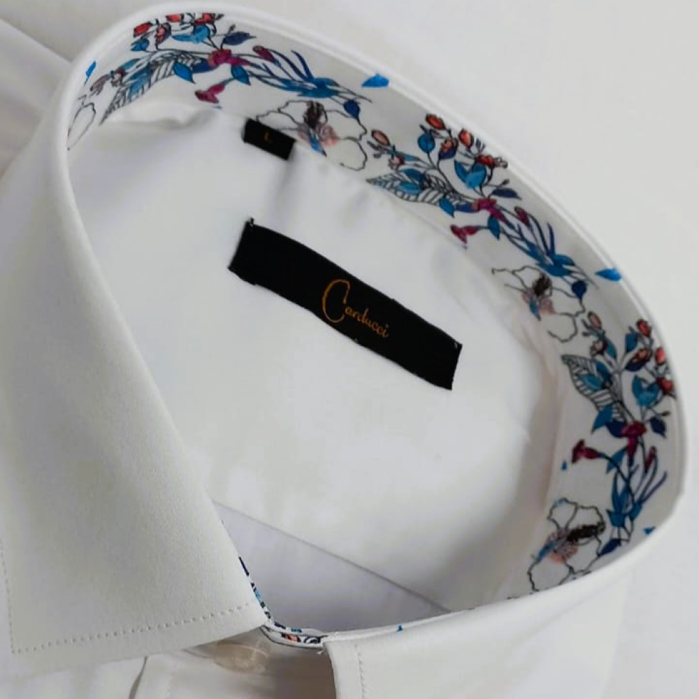 The Carducci Gio-Celli Shirt in White is a refined men’s dress shirt designed to deliver a clean, sophisticated look for formal and smart-casual occasions. Its classic white color and tailored styling make it a versatile wardrobe essential that pairs effortlessly with suits, blazers.