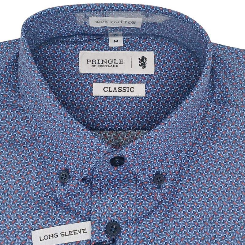 Pringle Davie L/S Geo Arrows Print Classic Shirt Blue