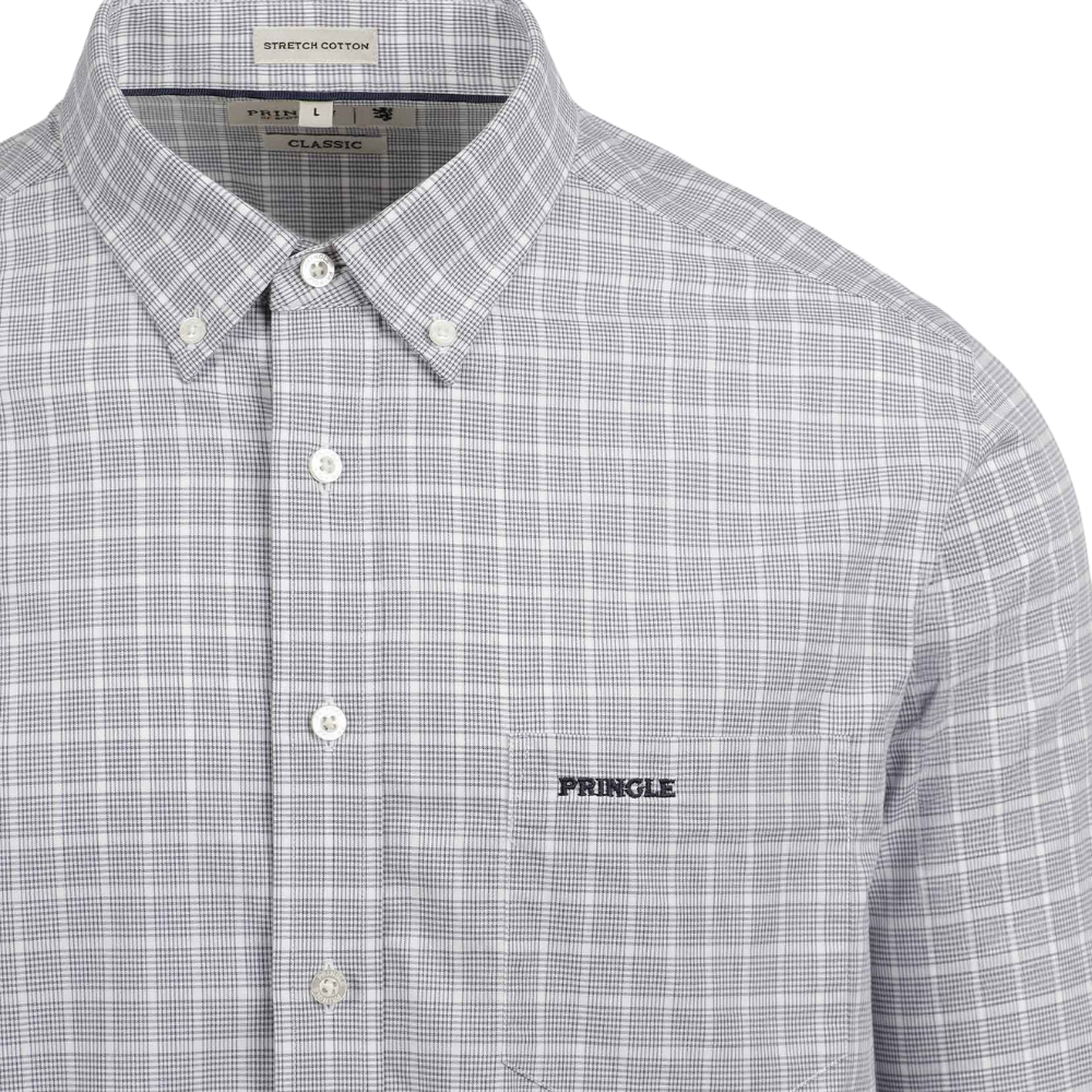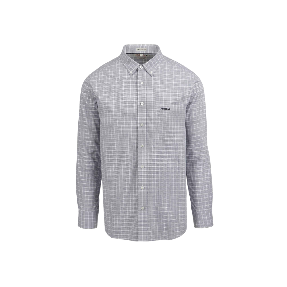 The Pringle Easy Care Long Sleeve Classic Fit Shirt is designed with convenience and style in mind. Crafted with a special finish that makes ironing and caring for your shirt easier, it requires minimal ironing, making it a practical choice for your wardrobe. Consciously made, it features light iron taped seams and a breathable fabric for all-day comfort. This timeless shirt offers a perfect balance of style and practicality. Designed with a classic fit, it provides a comfortable yet polished silhouette ideal for a variety of occasions. It features a pocket on the left chest, complete with the Pringle logo embroidered on the pocket, adding a signature touch of heritage. A button-down collar ensures a neat and structured appearance, while the box pleat at the back enhances ease of movement. Whether paired with formal trousers or dressed down with jeans, this shirt is a versatile essential for everyday wear.