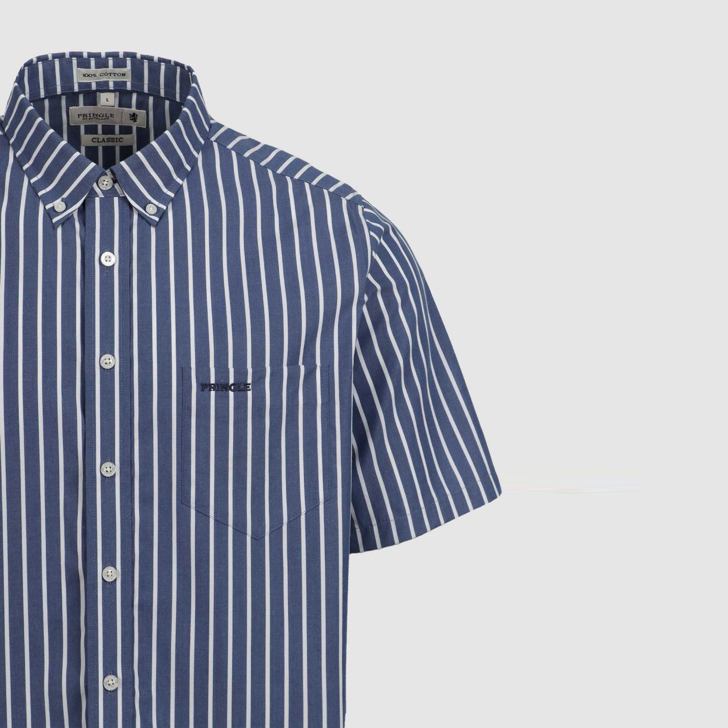 The Pringle Short Sleeve Classic Fit Shirt is a timeless addition to any wardrobe, offering a perfect balance of style and practicality. Designed with a classic fit, it provides a comfortable yet polished silhouette ideal for a variety of occasions. This shirt features a pocket on the left chest, complete with the Pringle logo embroidered on the pocket, adding a signature touch of heritage. A button-down collar ensures a neat and structured appearance, while the box pleat at the back enhances ease of movement. Whether paired with formal trousers or dressed down with jeans, this shirt is a versatile essential for everyday wear.