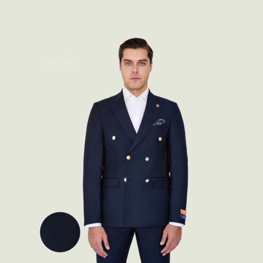 This suit strikes a sophisticated balance between classic tailoring and a modern slim fit. The double-breasted silhouette and wool-blend fabric make it ideal for impactful occasions—think business meetings, formal events, or stylish weddings. The pic-stitching and peak lapels elevate its elegance, while the unhemmed trousers offer personalized versatility.