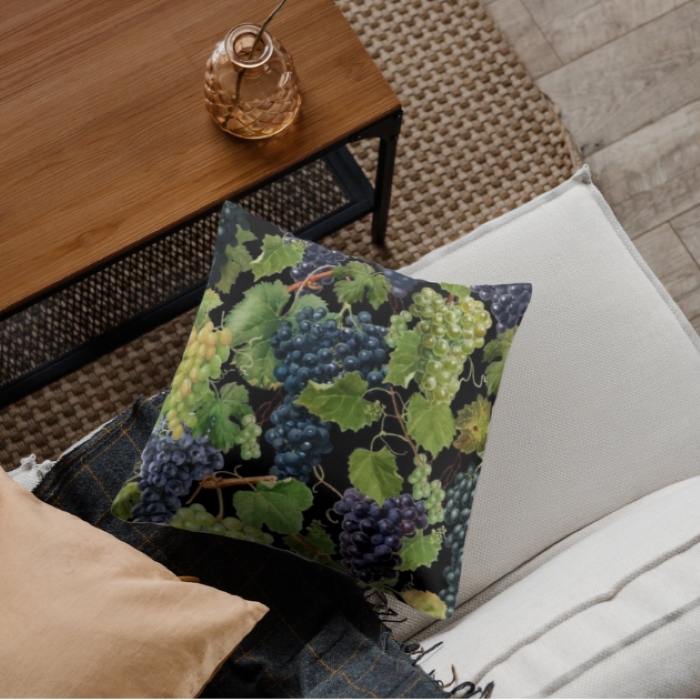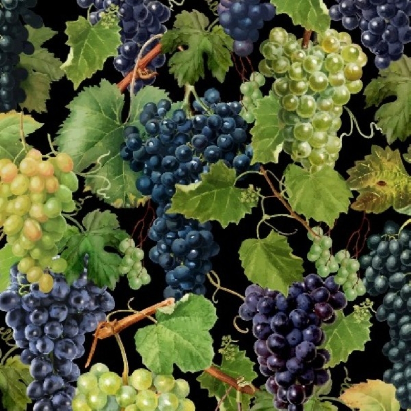 Grapes Black Upholstery Fabric typically refers to a decorative textile featuring grapevine motifs on a black background, often made from durable cotton or polyester blends suitable for upholstery projects. It combines a rich vineyard-inspired design with practicality for furniture covering.