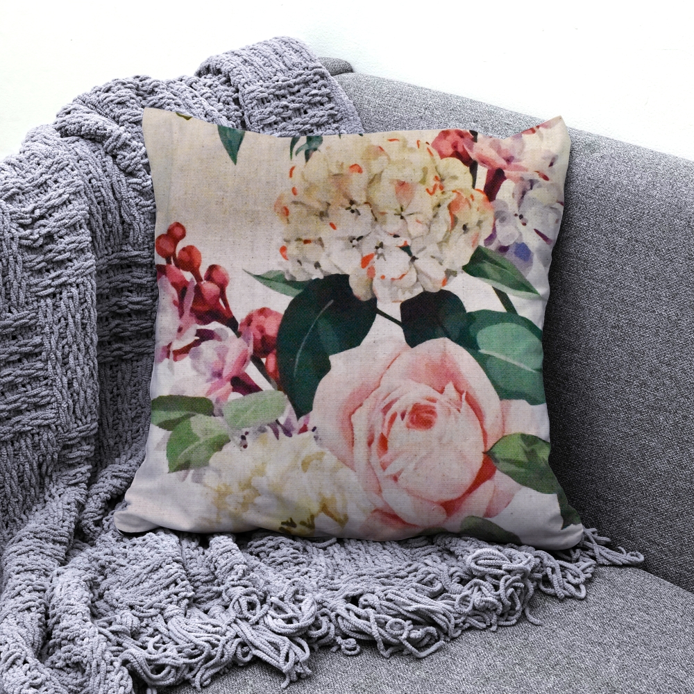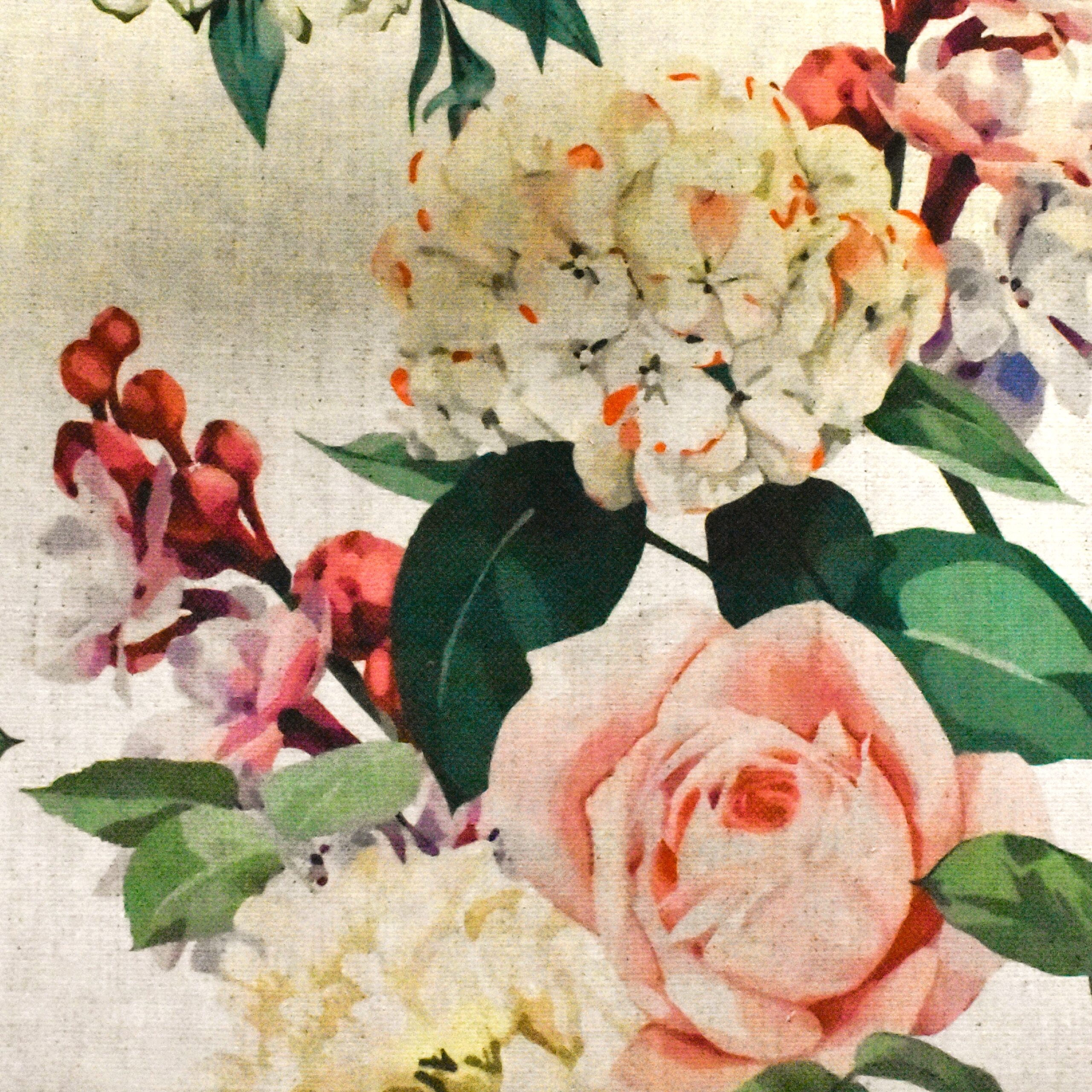 The intricate floral design combines soft, pastel hues with natural greens, creating a fresh and inviting look.