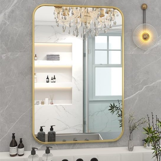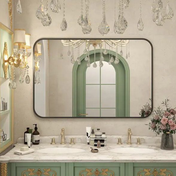 Upgrade your home decor with this modern and stylish Wall Mounted Bathroom Mirror with Round Corner. Made with high-quality aluminum alloy and float glass, this mirror is not only functional but also adds aesthetic appeal to your living space. The ultra-thin frame and round corners make it suitable for any area in your home, from the bathroom to the bedroom.