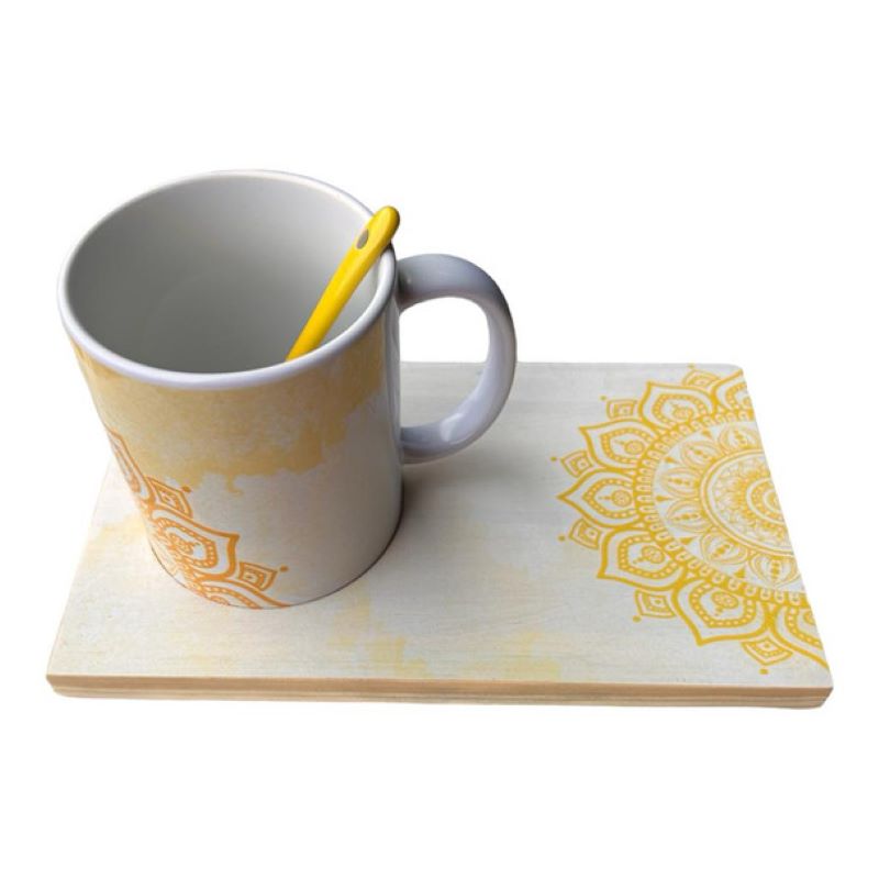 Wooden printed tray 350ml Printed mug with a ceramic spoon included Tray