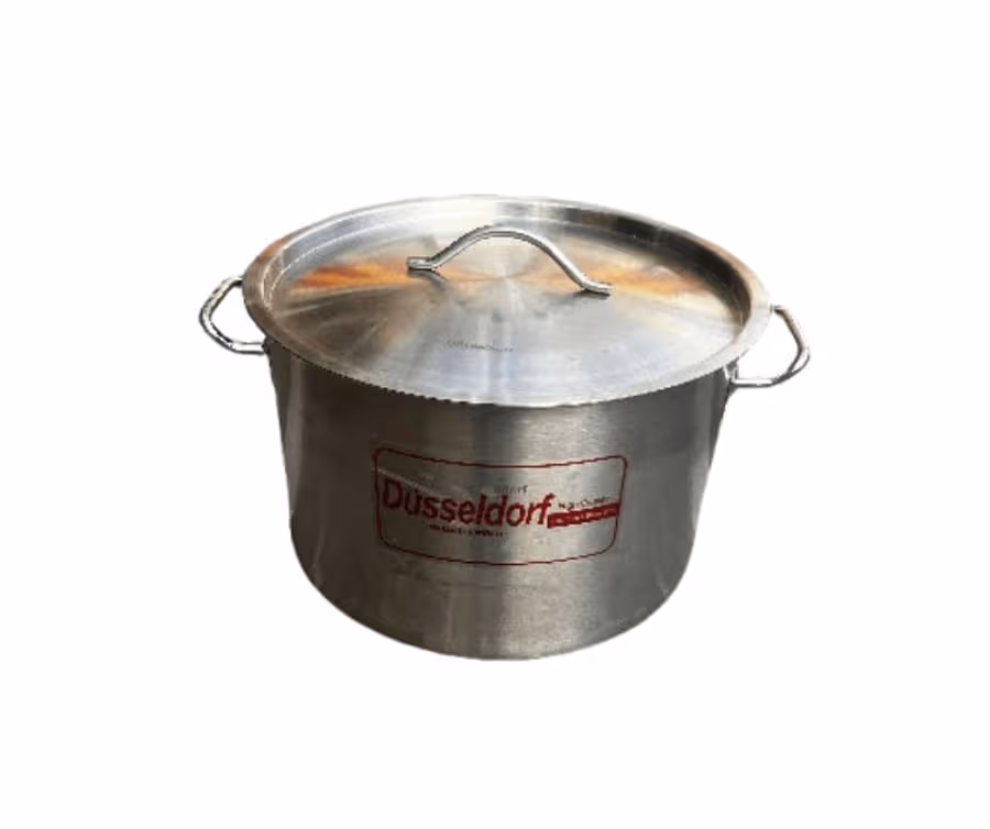 Dusseldorf stainless steel pots are heavy-duty, German-inspired cookware designed for catering and large-scale cooking. They are made from durable stainless steel, available in multiple sizes (from 8L up to 20L), and are valued for their corrosion resistance, high thermal conductivity, and ability to withstand temperatures up to 260°C.