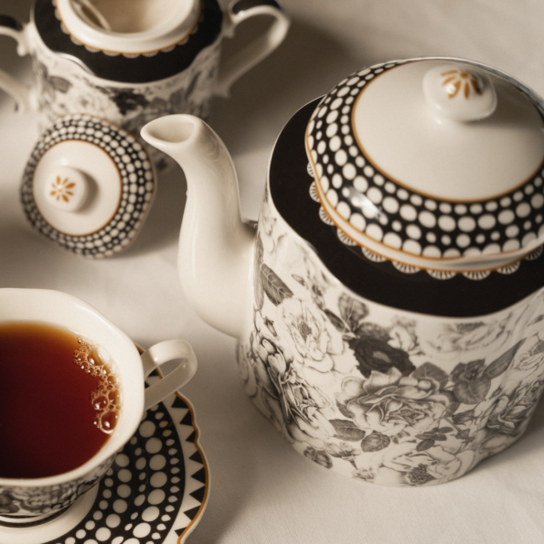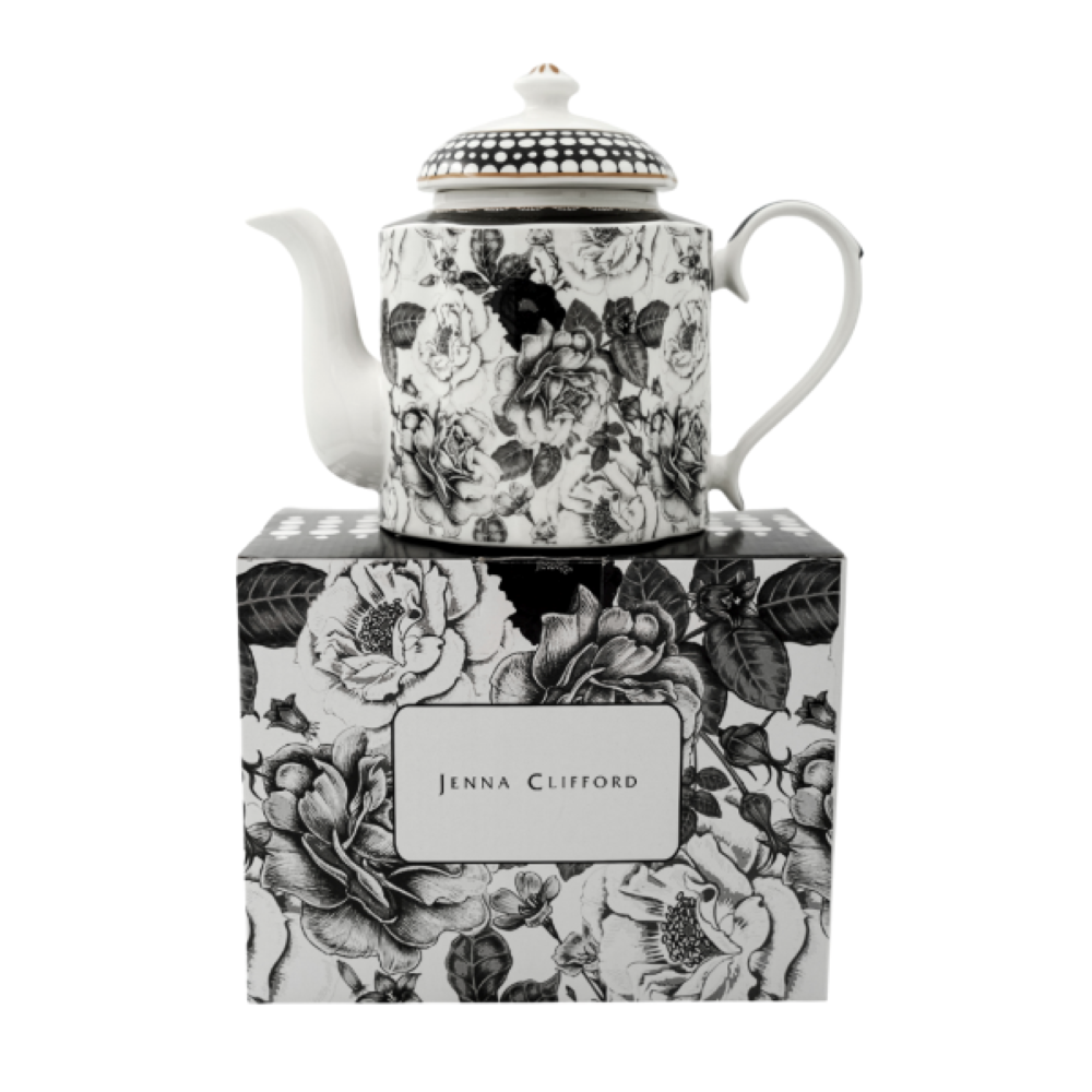 The Jenna Clifford Black Rose teapot is the ideal way to add a touch of luxury to your table. Its elegant monochrome colour scheme makes it perfect for any formal or informal occasion. The set is crafted with the highest quality and durability standards.
