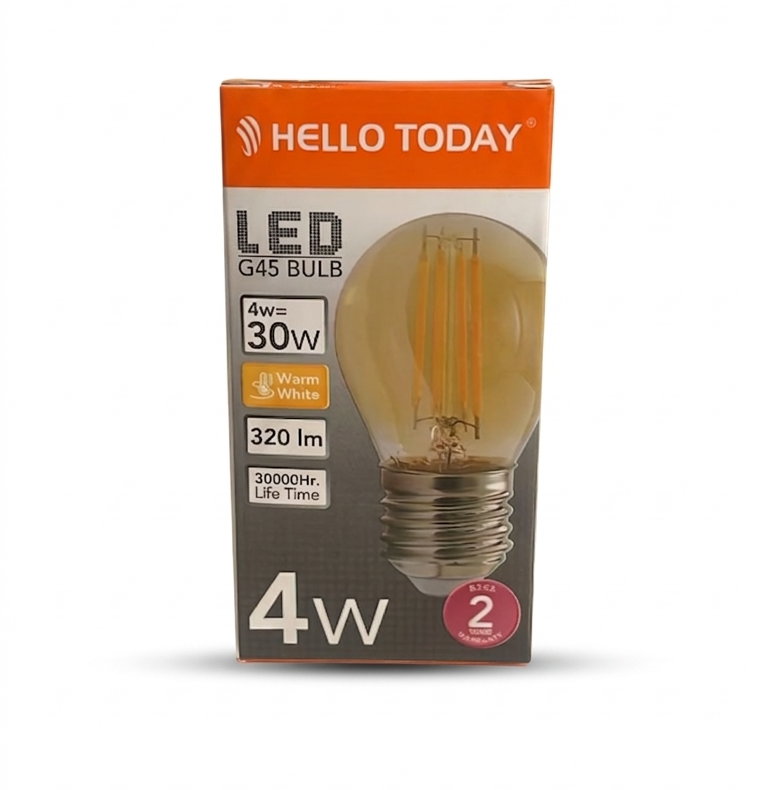 Hello Today 4W G45 E27 Filament Bulb – Warm White
