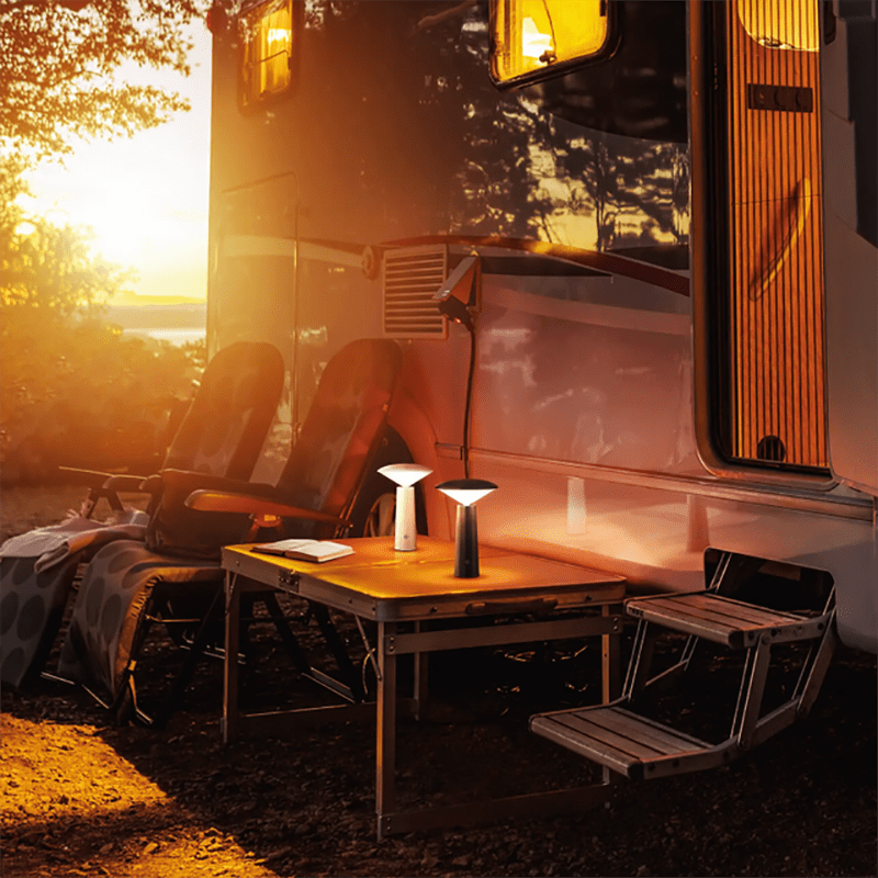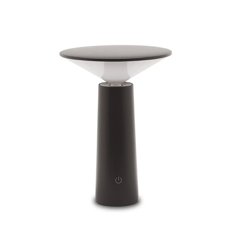 Rechargeable, color-changing, LED table lamp with ABS body and diffuser.