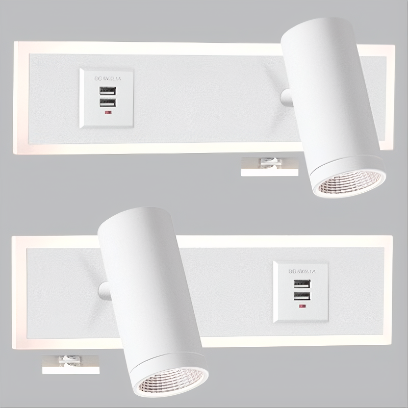 Aluminium and Acrylic Bedside Wall Bracket Set (2 per box) with 2 USB Ports and 2 Switches