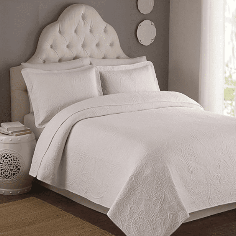 Simon Baker 1104 Paisley Quilted Bedspread White