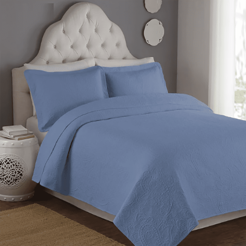 Simon Baker 1651 Paisley Quilted Bedspread French Blue