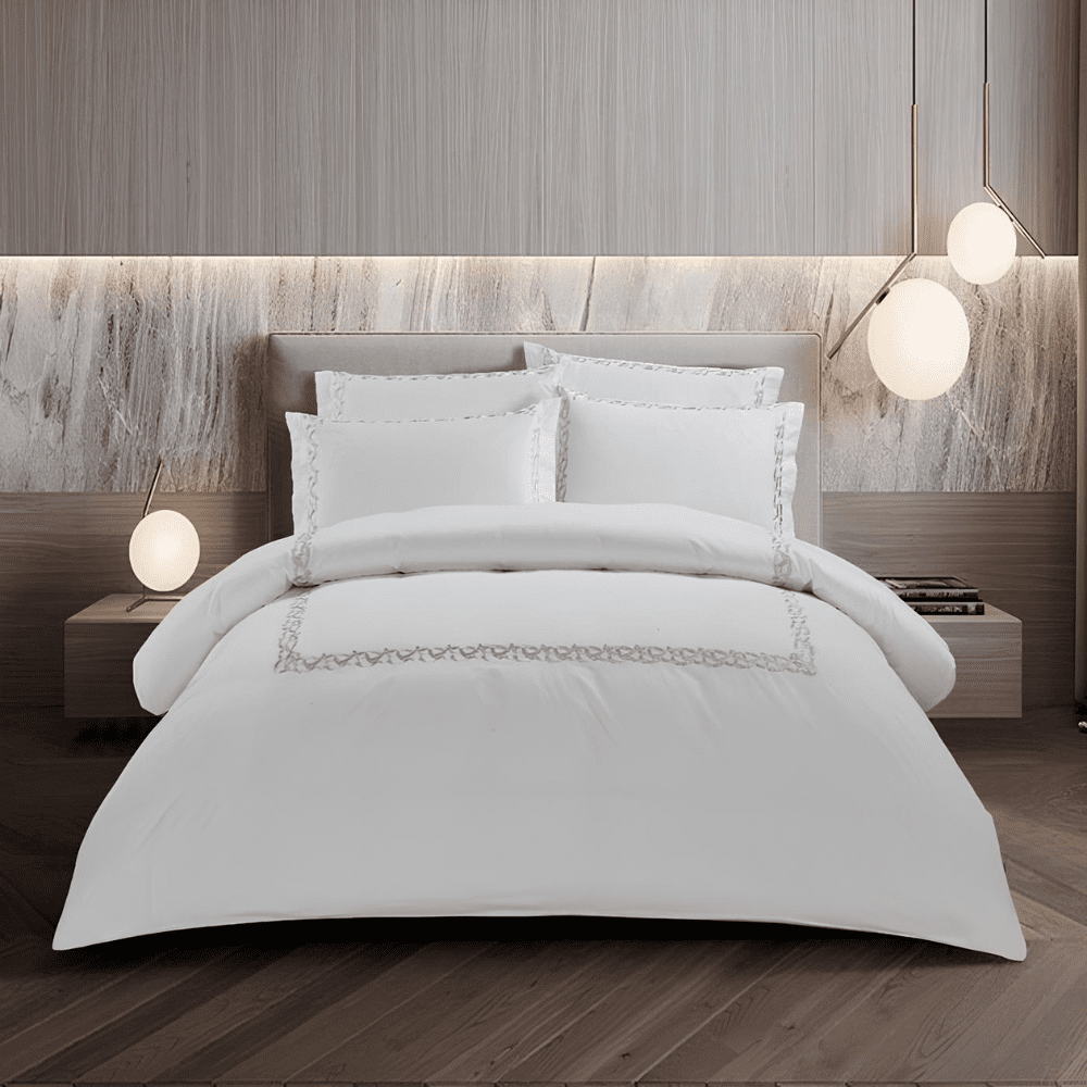 Experience the luxury and elegance of superior-quality linen with our Embroidery Egyptian Cotton Boutique Collection. Crafted from certified 400 thread count Egyptian cotton, this duvet cover set offers exceptional softness, durability, and timeless style.