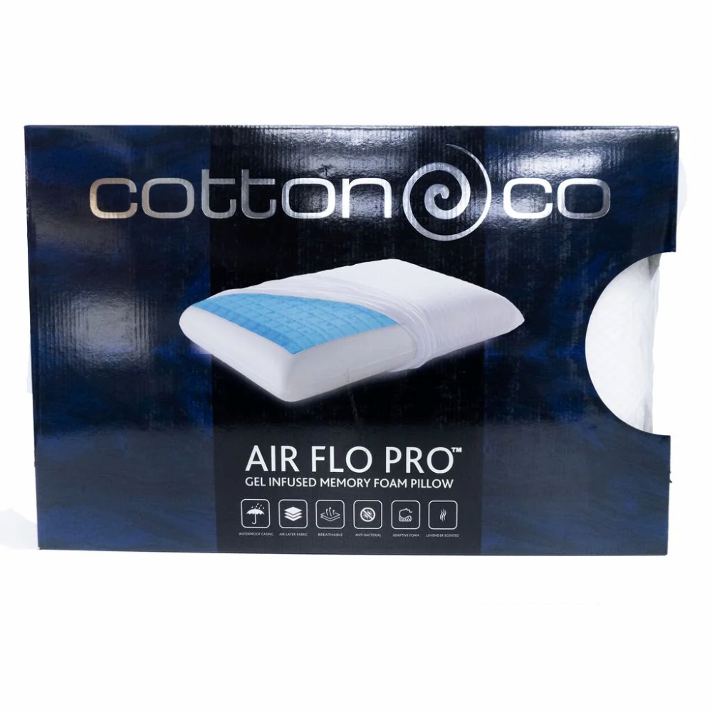 The Premium Air Flo Pro Memory Foam pillow from Cotton Co ensures a perfect night sleep. Developed with an advanced “Air -Layered” Technical Surface for excellent breathability, and a Micro “H20Pro”membrane layer that makes it 100% waterproof! Anti-Bacterial Properties allows for a healthy & Peaceful night’s Sleep.