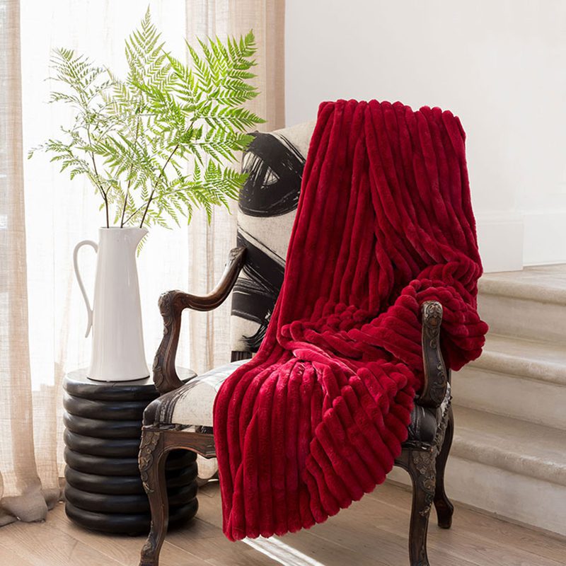 Beautifully soft and perfectly warming, our stylish and cosy Decadence throw in ruby will become your most-adored winter possession. Made from a lustrous fabric, this ribbed pile throws reverses to a soft plain fabric and will drape beautifully over your bed, armchair or sofa.