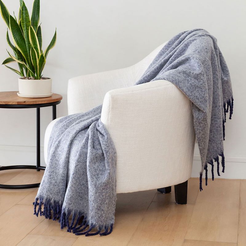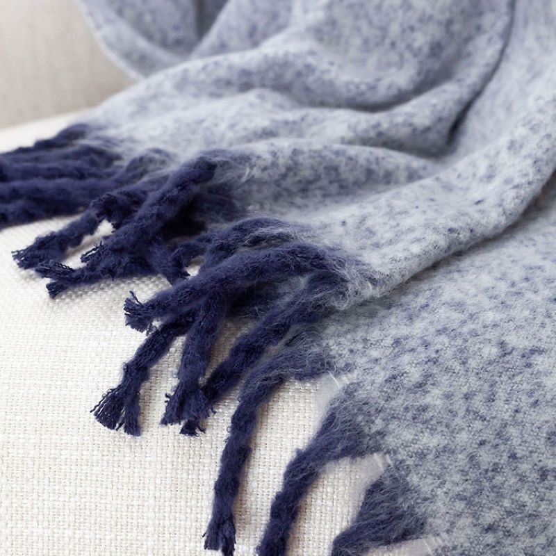 Instil a contemporary aesthetic with this textured lightweight throw in ocean. Made from the softest, cosiest textured wool look yarn, Embrace emulates timeless design with this faux mohair throw. This super comfy throw is finished with a bouillon fringe detail. Style with coordinating cushions for a super-chic, complete aesthetic.