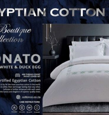 Price range: R2,024.25 through R2,324.25Cotton Co Donato Duvet Cover 400TC White/Duck Egg