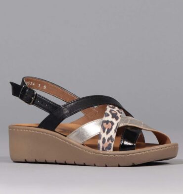 Froggie Padded Strap Slingback Wedge in Black – 12514