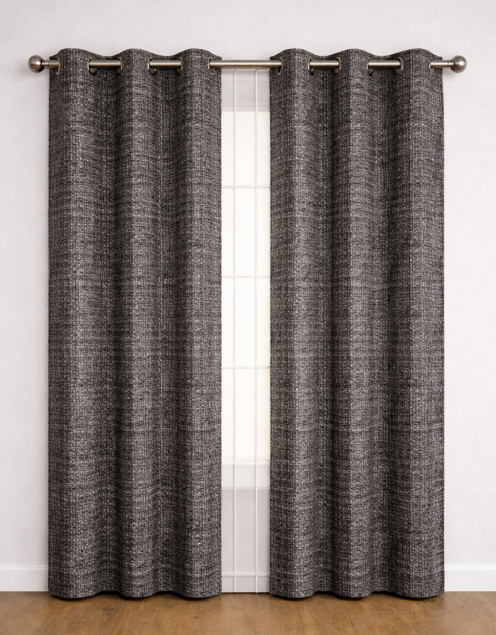 The Vie De Luxe Carrie Eyelet Storm curtain offers a modern and elegant window dressing solution for contemporary interiors. Designed with stylish metal eyelets at the top, the curtain slides smoothly onto a curtain rod to create neat, uniform pleats and a clean, structured drape. The “Storm” color provides a deep, sophisticated grey tone that complements a wide range of décor styles.