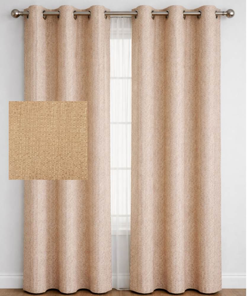 The Vie De Luxe Carrie Eyelet Oatmeal curtain offers a modern and elegant window dressing solution for contemporary interiors. Designed with stylish metal eyelets at the top, the curtain slides smoothly onto a curtain rod to create neat, uniform pleats and a clean, structured drape. The “oatmeal” color provides a deep, sophisticated grey tone that complements a wide range of décor styles.