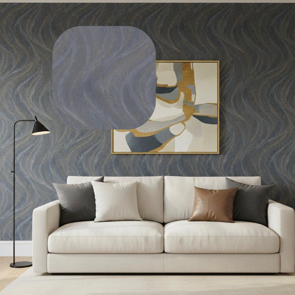 The Petrol colour way combines rich blue tones with accents of gold, purple, and silver, offering a luxurious and dramatic aesthetic. This bold palette creates statement feature walls that enhance lounges, bedrooms, offices, or boutique commercial spaces